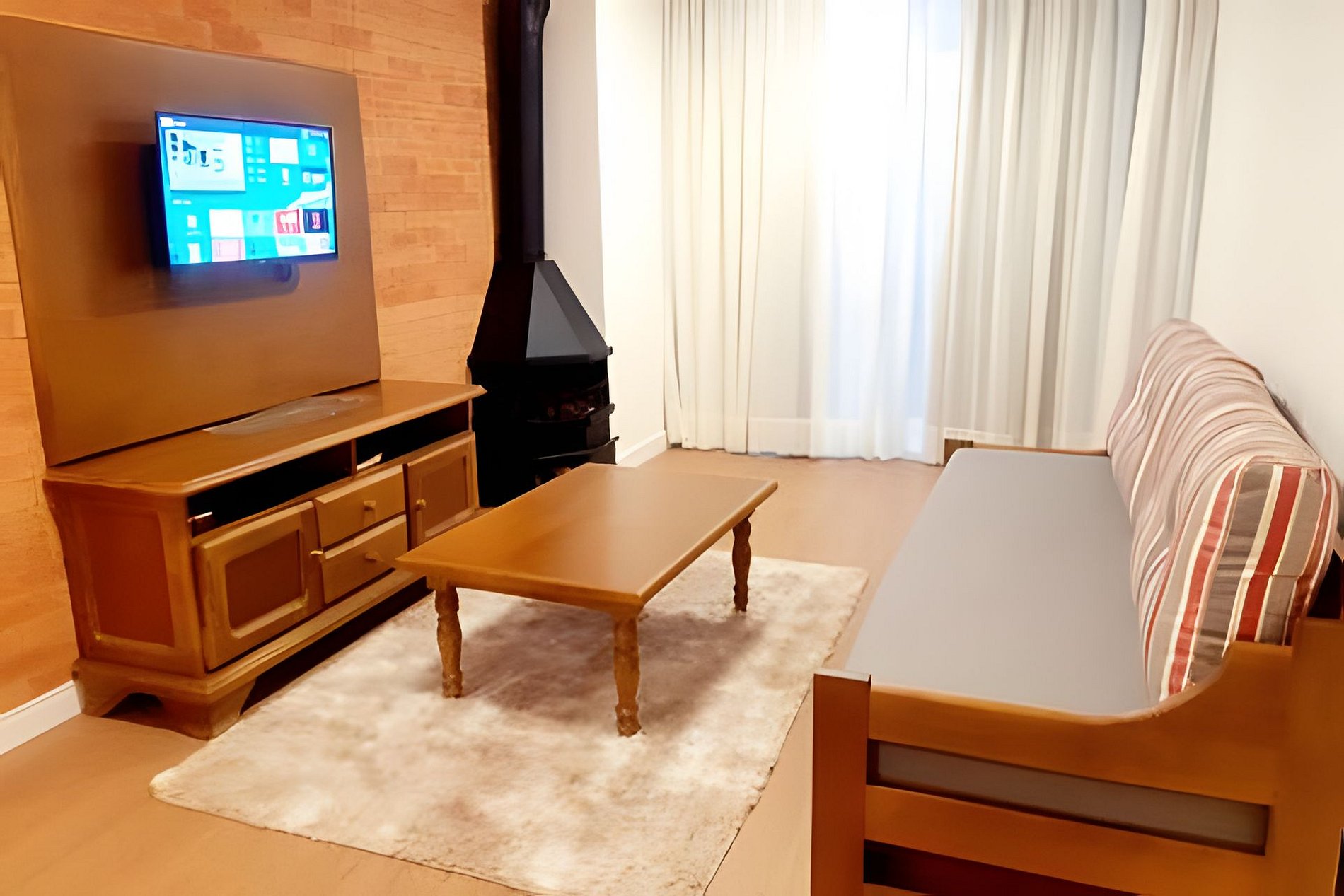 Spectacular location behind the Praça das Etnias, where the Pão dos Colonos is located. In the heart of downtown Gramado, near the main tourist spots, with the advantage of being in a flat area. Perfect for those seeking tranquility and comfort in the most central area of Gramado! Great for families with elderly and young children. Spacious apartment, with hot and cold air conditioning in all rooms. Barbecue and fireplace. Facing the street. Covered garage. Space with sofas in the garden
