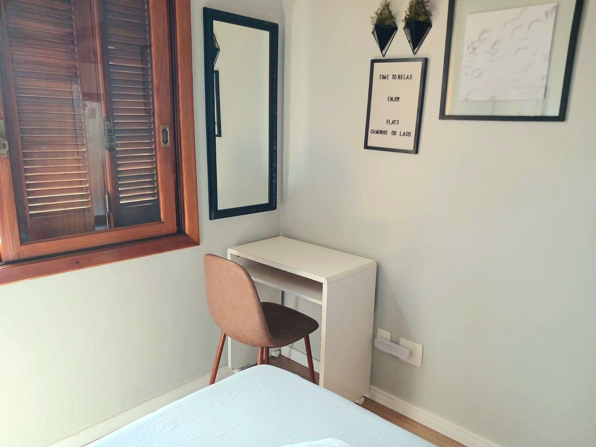 Olá, flat aconchegante e com bom suporte de utensílios, móveis e eletrodomésticos. O local é bem pequeno, mas comporta bem um casal, fomos com nosso filho de 1 ano e levamos um colchão pequeno para poder dormir no quarto conosco. O aquecimento com ar condicionado e estufa são muito bons, só senti falta de uma cortina black-out no quarto, pois ao amanhecer ficava bem claro, mesmo com as persianas fechadas, roupas de cama e toalhas bem limpos e novos. O residencial é silencioso e com ótimo estacionamento. Os anfitriões são muito atenciosos e muito solícitos. Foram dias muito agradáveis.
