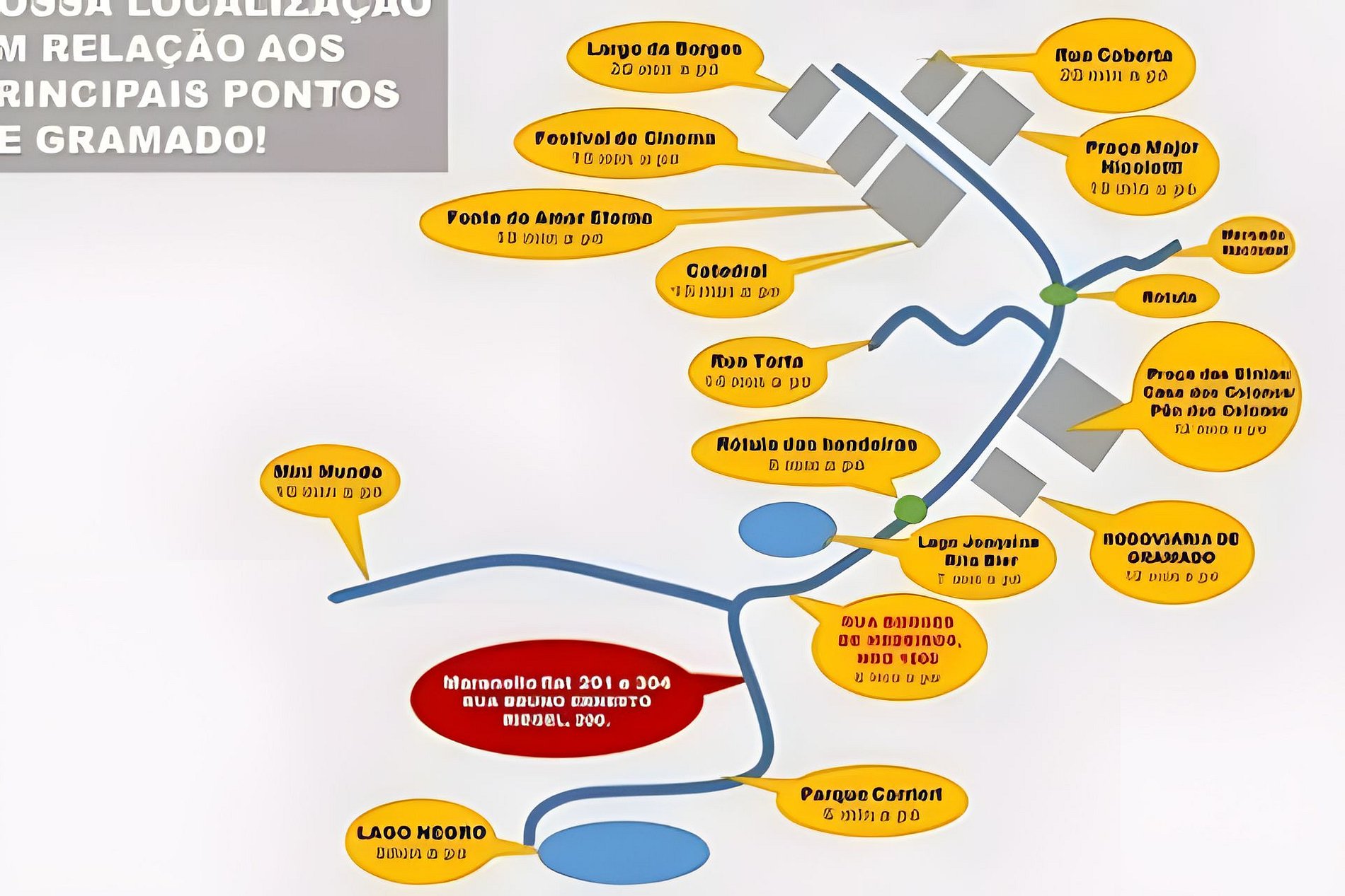 A pocos pasos del Centro (450 m de Borges de Medeiros, saliendo a la altura de Lago Joaquina Rita Bier y Pizzería Temática Hector), donde llegará a la calle principal, Borges de Medeiros, y tendrá acceso a restaurantes, cafeterías y principales puntos turísticos, como Rua Coberta, Rua Torta, Catedral, Praça das Etnias, Pão dos Colonos, etc.