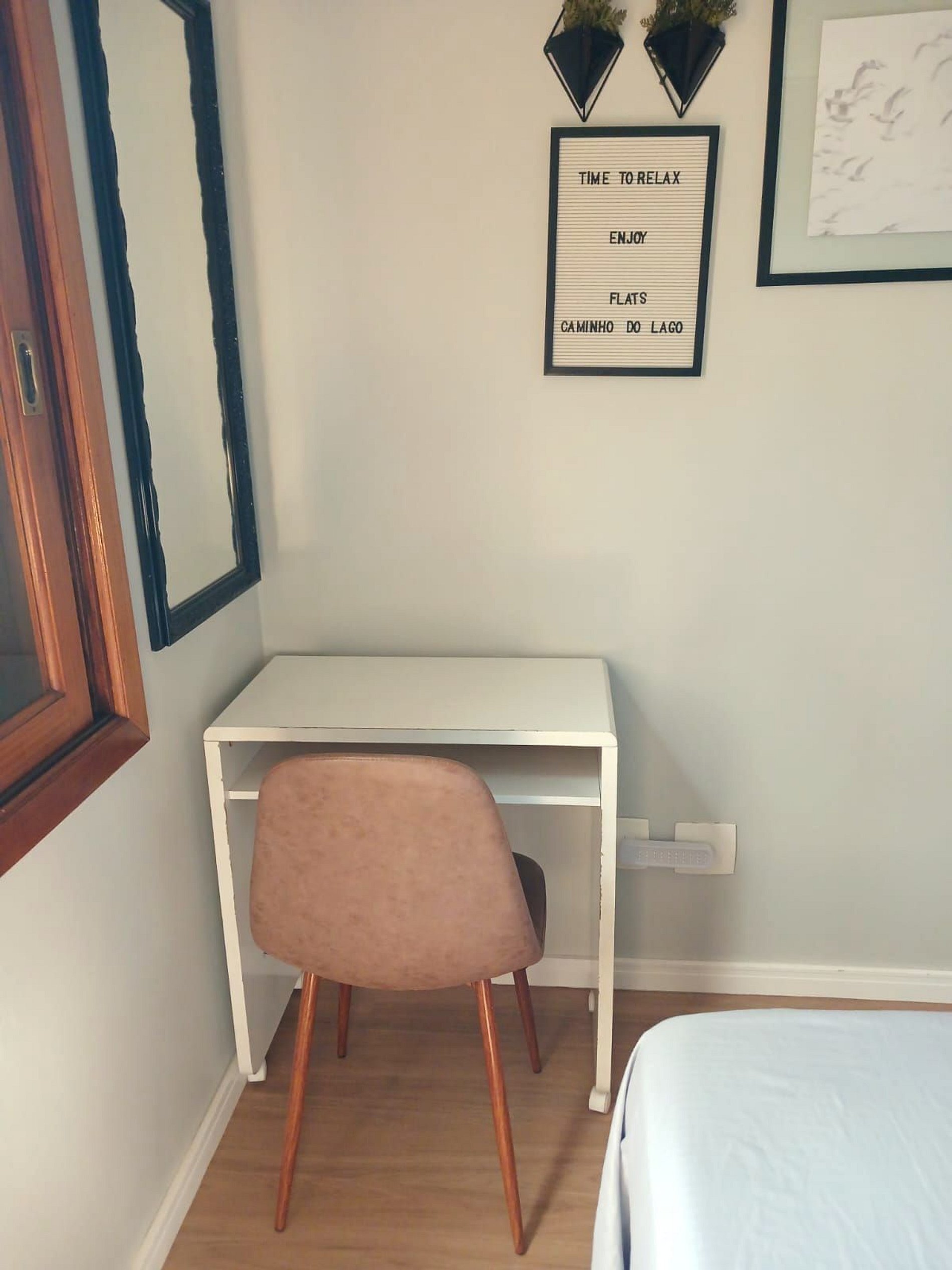 Olá, flat aconchegante e com bom suporte de utensílios, móveis e eletrodomésticos. O local é bem pequeno, mas comporta bem um casal, fomos com nosso filho de 1 ano e levamos um colchão pequeno para poder dormir no quarto conosco. O aquecimento com ar condicionado e estufa são muito bons, só senti falta de uma cortina black-out no quarto, pois ao amanhecer ficava bem claro, mesmo com as persianas fechadas, roupas de cama e toalhas bem limpos e novos. O residencial é silencioso e com ótimo estacionamento. Os anfitriões são muito atenciosos e muito solícitos. Foram dias muito agradáveis.