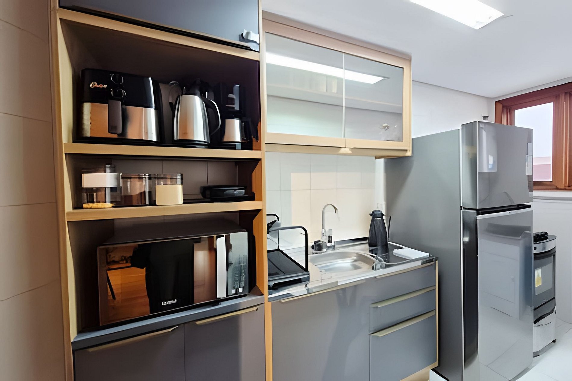 ATENÇÃO: Esses itens são colocados para garantir um acesso tranquilo no momento em que o hóspede acessa o apartamento. As quantidades são suficientes para que este ganhe tempo até ir ao mercado fazer suas compras. As reposições são por conta do hóspede, como é de costume em locações por temporada.