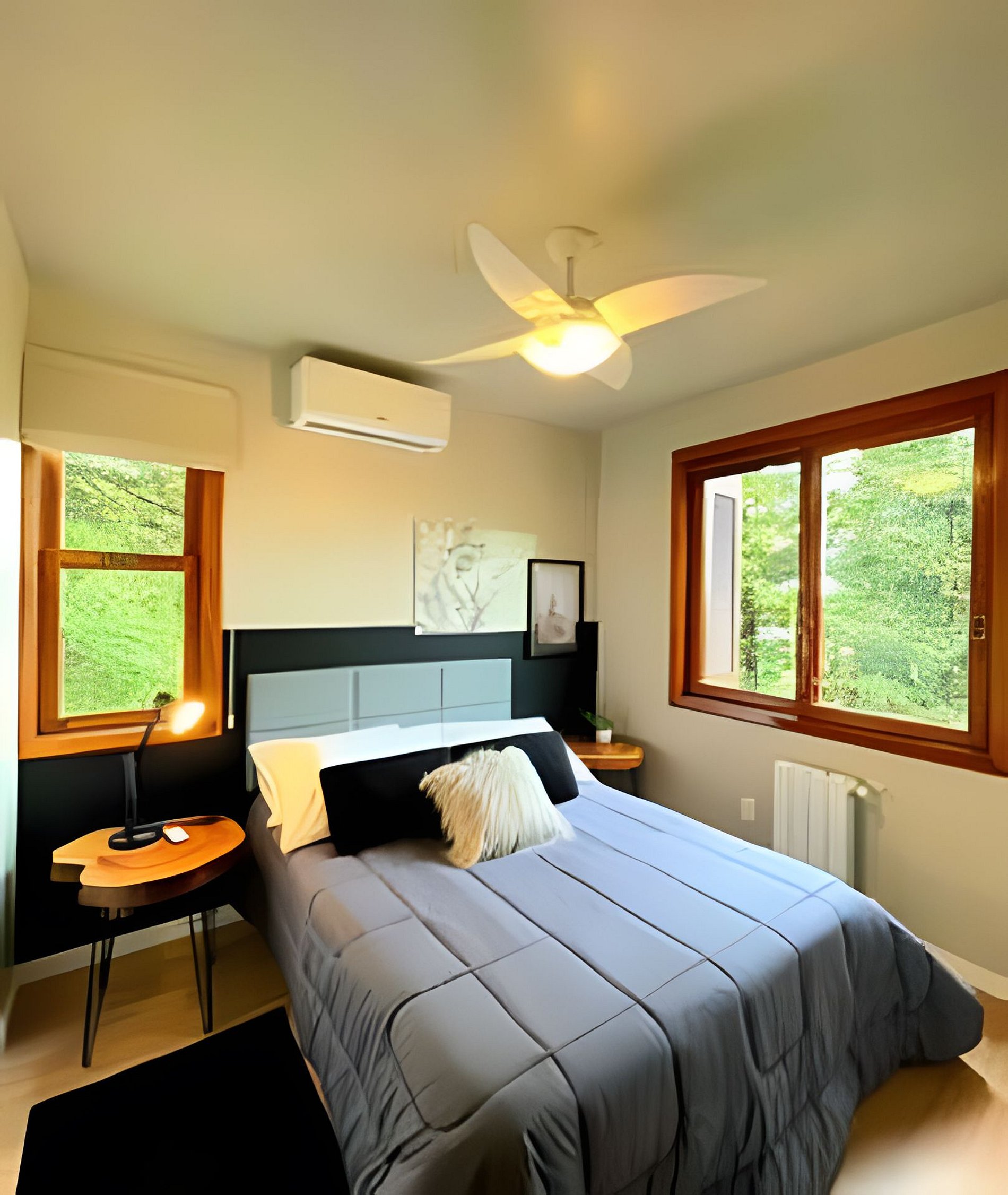 O Ar condicionado quente e frio climatiza todo apto rapidamente, mais reforço com aquecedor portátil, caso precisem.