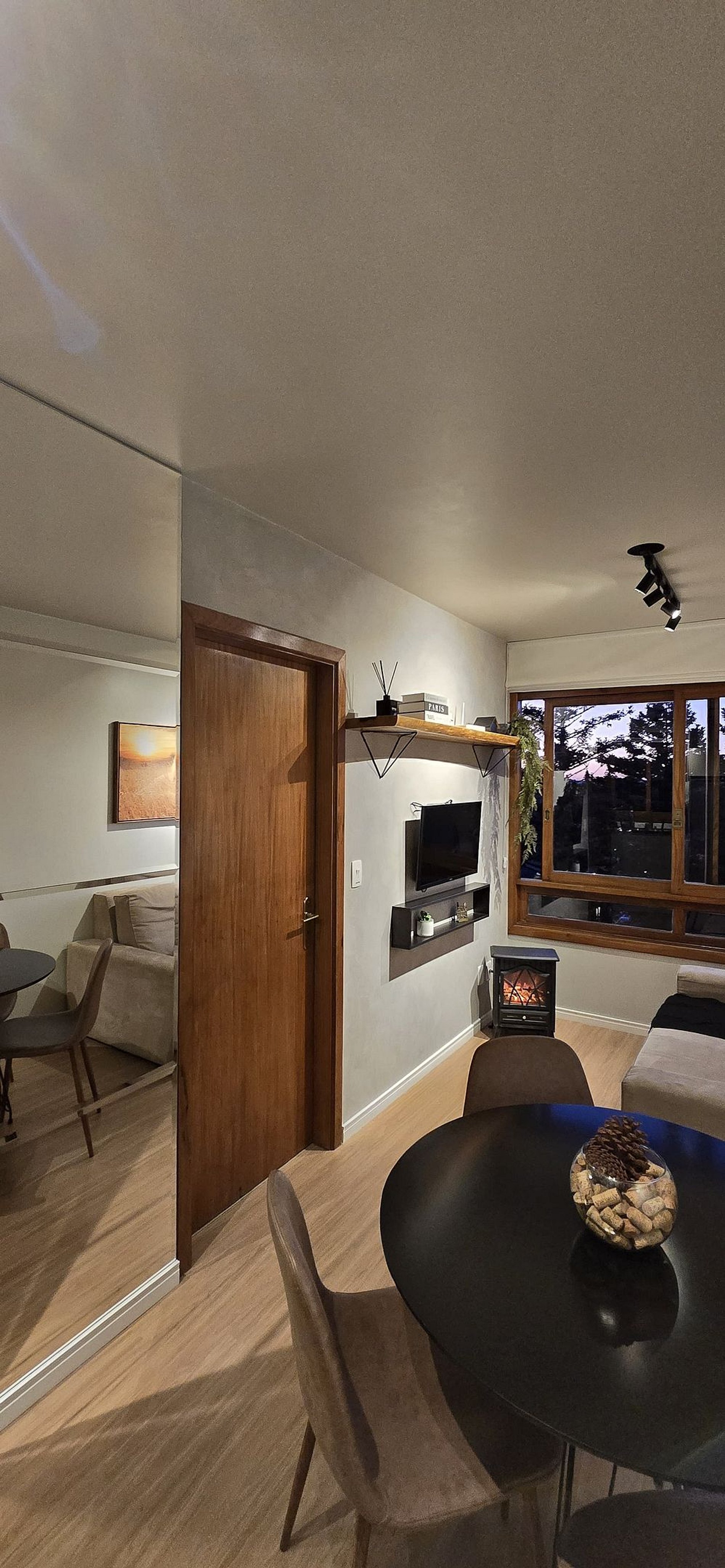 Lindo apartamento a poucos metros do centro de Gramado, 3 quadras da Borges! ! Flat moderno, funcional e muito confortável. Nossa vista é espetacular! Temos TV Smart e Wi-Fi! Temos uma cozinha bem equipada, com bons utensílios. Ar condicionado no quarto (quente e frio), estufa extra. Estacionamento privativo. Elevador. Roupas de cama, mesa e banho! Será um prazer recebê-los!