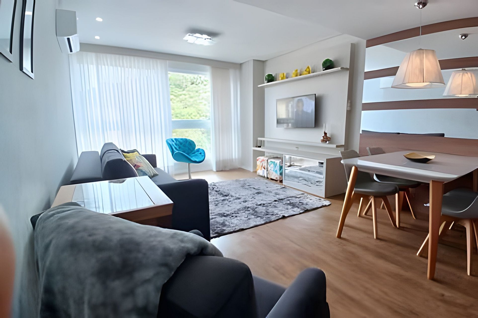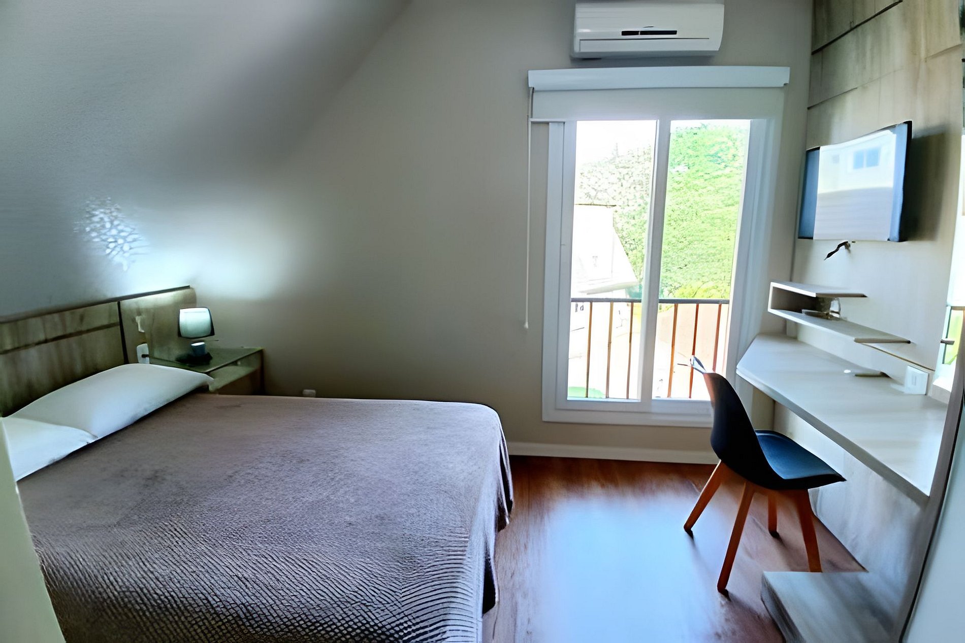 Você receberá um apartamento lindamente decorado e equipado para seu conforto e praticidade! Poderá ir a pé a cafeterias, restaurantes, atrações famosas, aluguel de carros e lojas. Chegará em 5 min no centro de Gramado. Ideal para famílias com crianças e casais para dividir. Perfeito para Home Office, pelos espaços de trabalho nos quartos com boa internet! Churrasqueira, Tv Smart, chuveiro a gás, ar condicionado quente/frio e uma linda vista!