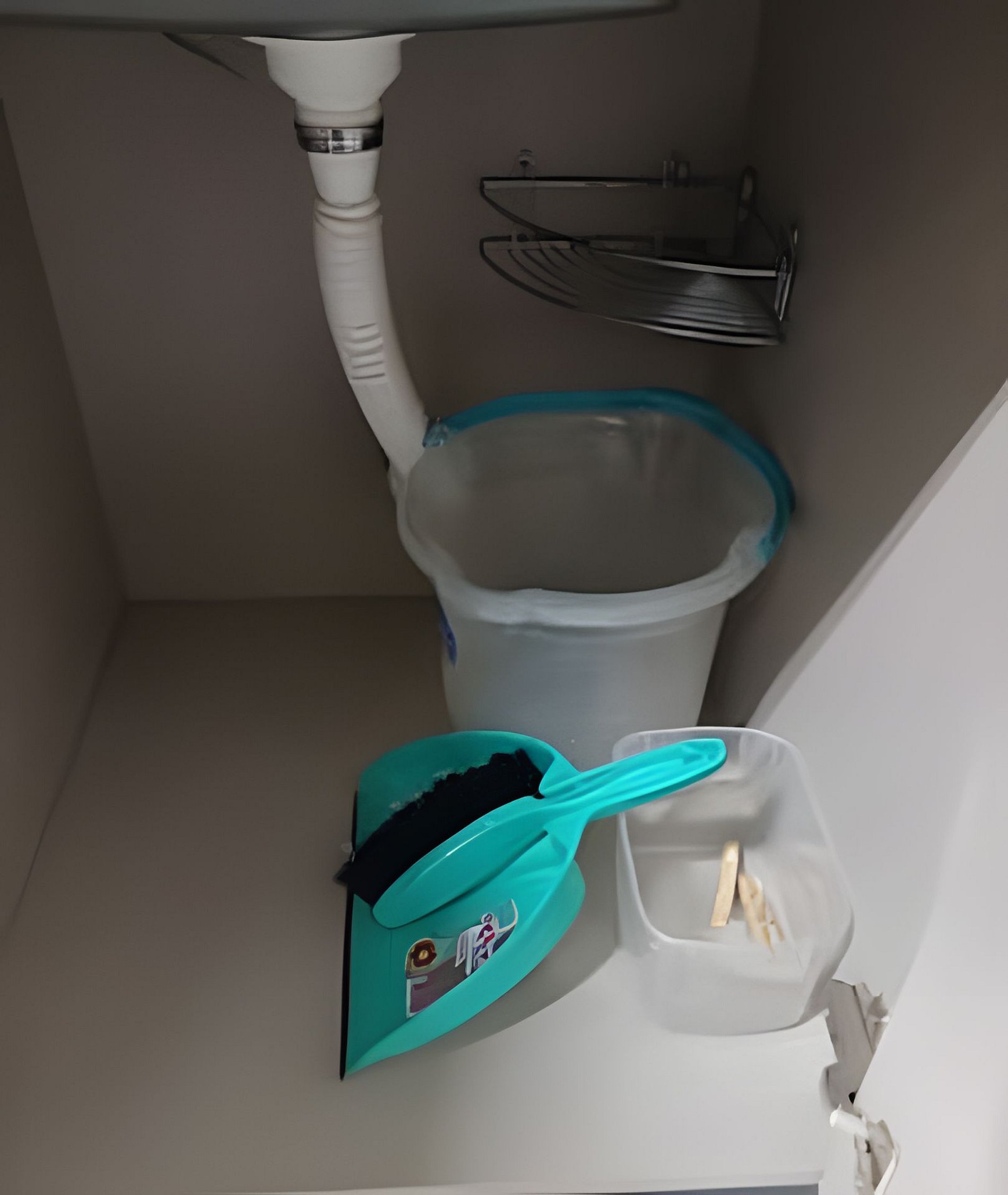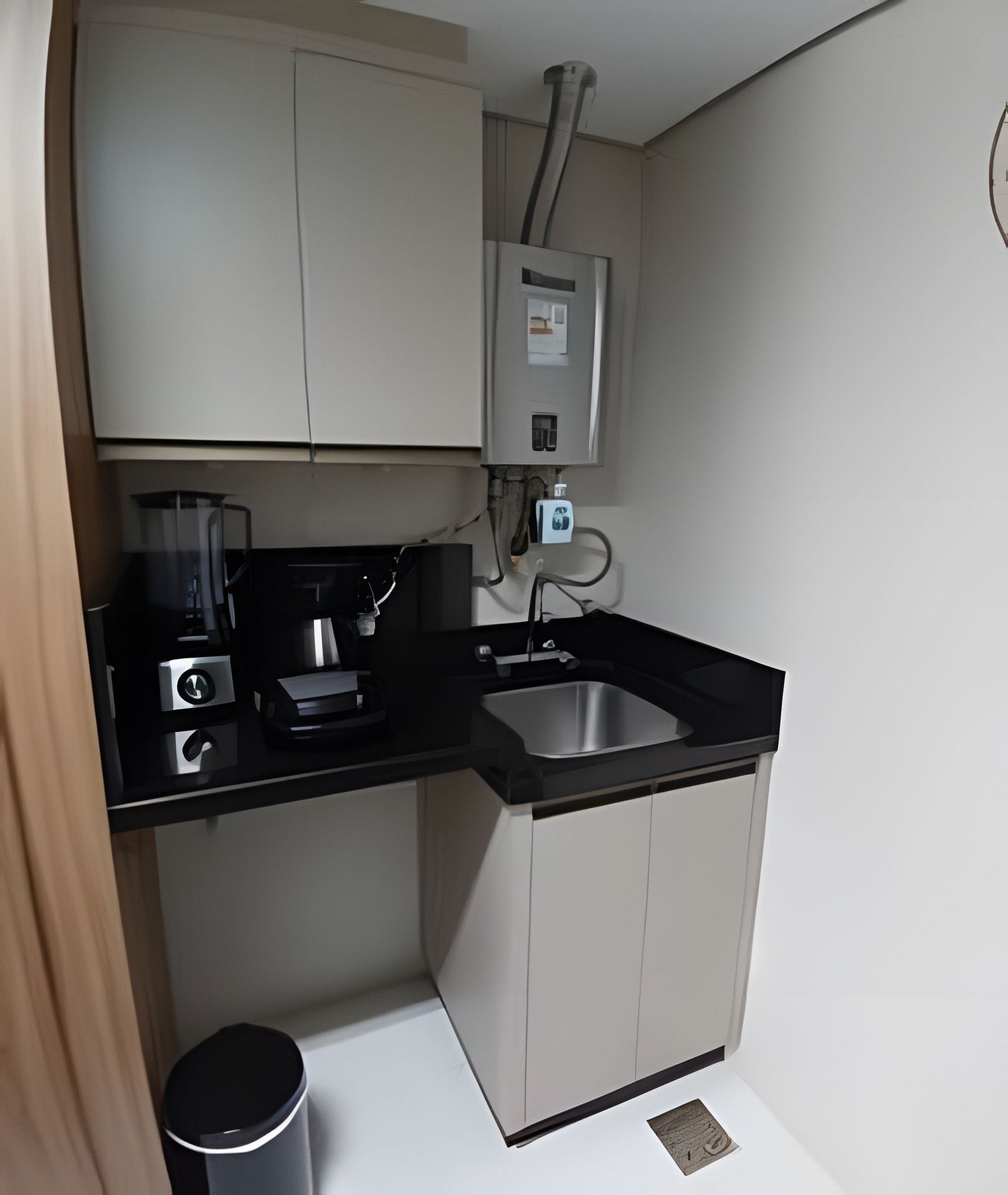- Área de serviço possui tanque, panos de chão para emergência, produto de chão, balde e vassoura.