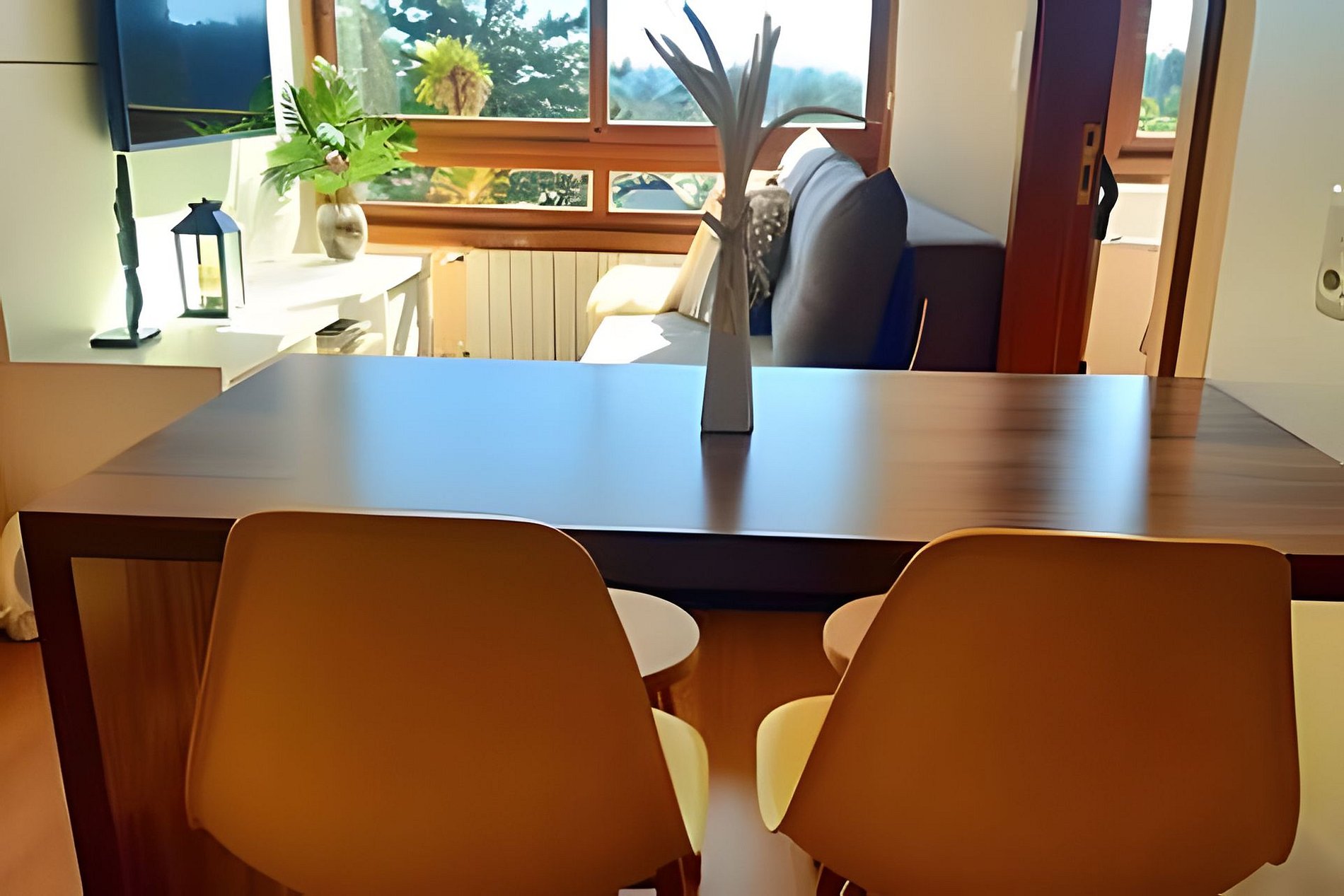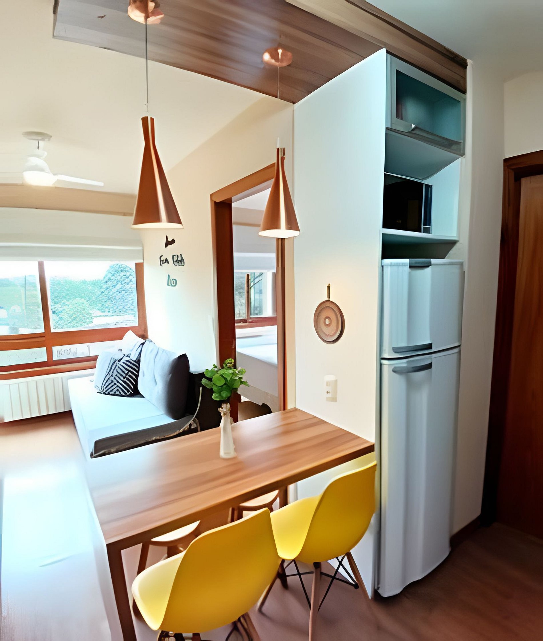 Tomadas ao lado da cama e mesa de jantar