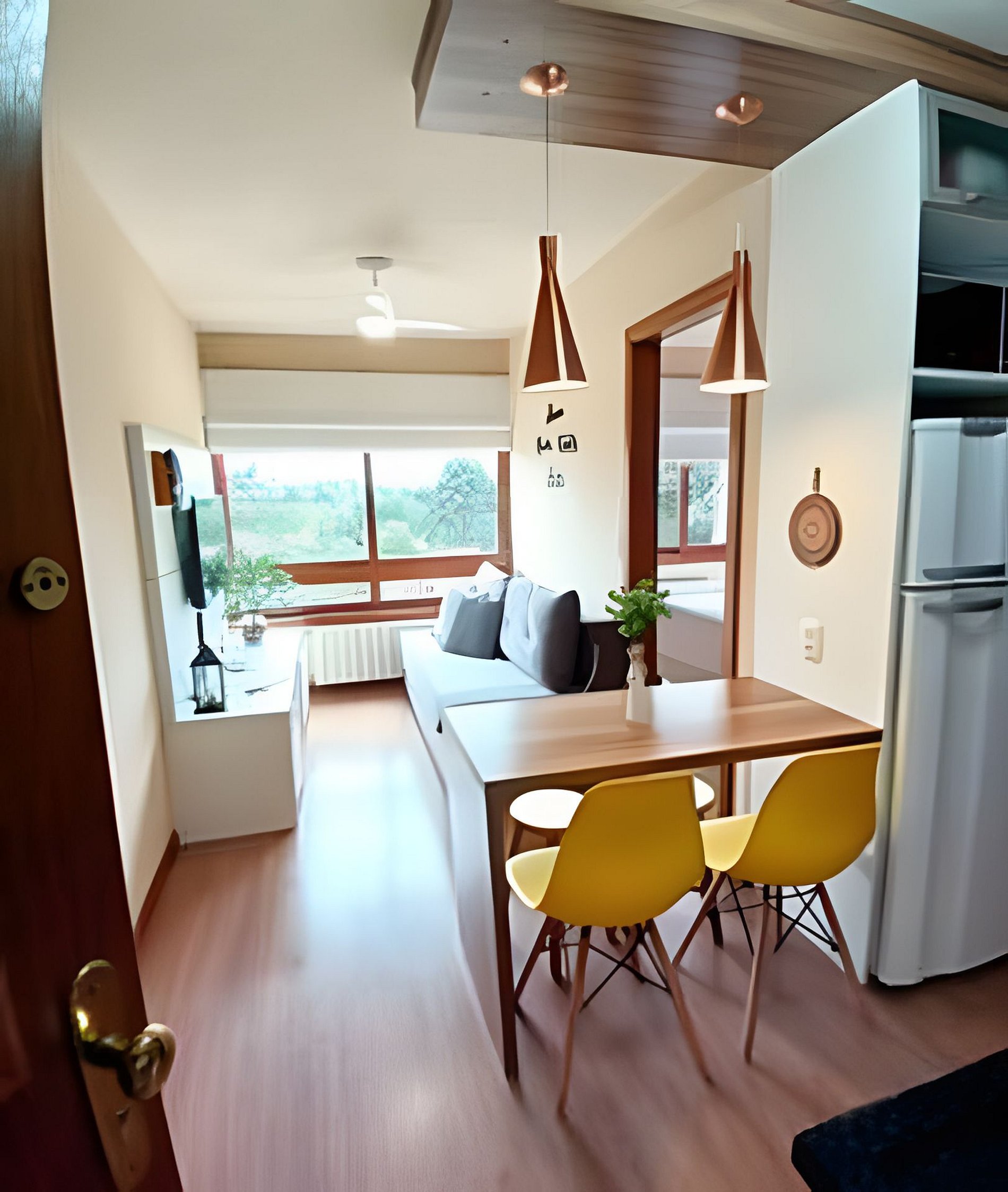 O Ar condicionado quente e frio climatiza todo apto rapidamente, mais reforço com aquecedor portátil, caso precisem.