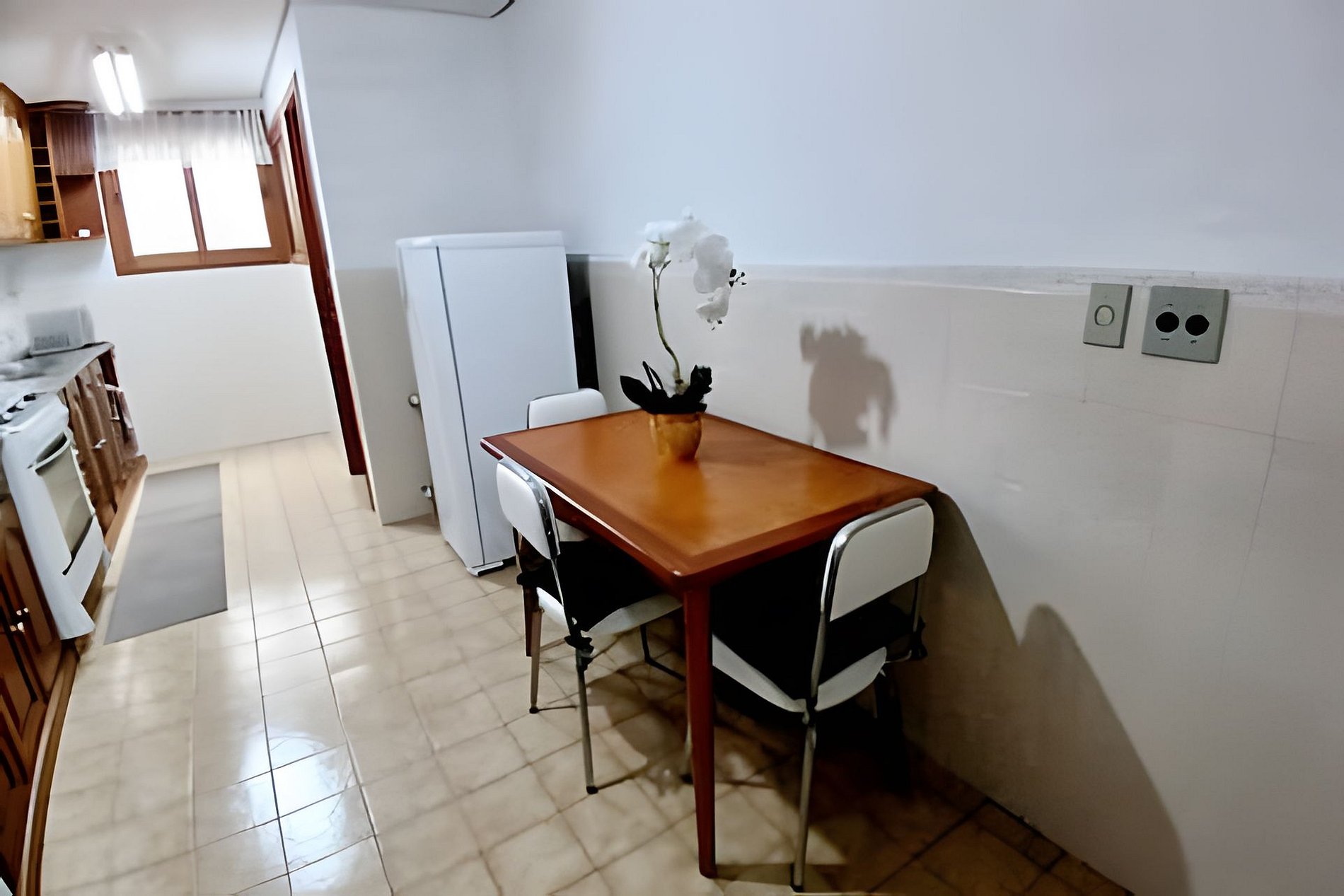 o apartamento tem uma suíte grande, um quarto de casal e um outro quarto menorzinho (este com uma beliche), banheiro social, sala com sala de jantar, cozinha grande, lavanderia e uma área externa envidraçada que é um charme!