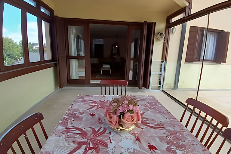 Fiquei no apartamento da Karen com minha família (5 adultos e 3 crianças de 12 anos) e valeu muito o custo beneficio! O apartamento fica na frente da prefeitura de Gramado, extremamente bem localizado (5 minutos à pé da rua coberta) e dispunha de tudo o que precisamos para nos acomodarmos confortavelmente. O imóvel tem apenas uma garagem, mas a anfitriã providenciou uma segunda vaga na garagem do próprio condomínio e isso foi um diferencial para nós, pois estávamos preocupados como ficaria a logística da viagem se tivéssemos que estacionar o segundo automóvel em outro local. o apartamento tem uma suíte grande, um quarto de casal e um outro quarto menorzinho (este com uma beliche), banheiro social, sala com sala de jantar, cozinha grande, lavanderia e uma área externa envidraçada que é um charme! Voltaremos, com certeza! Obrigada!